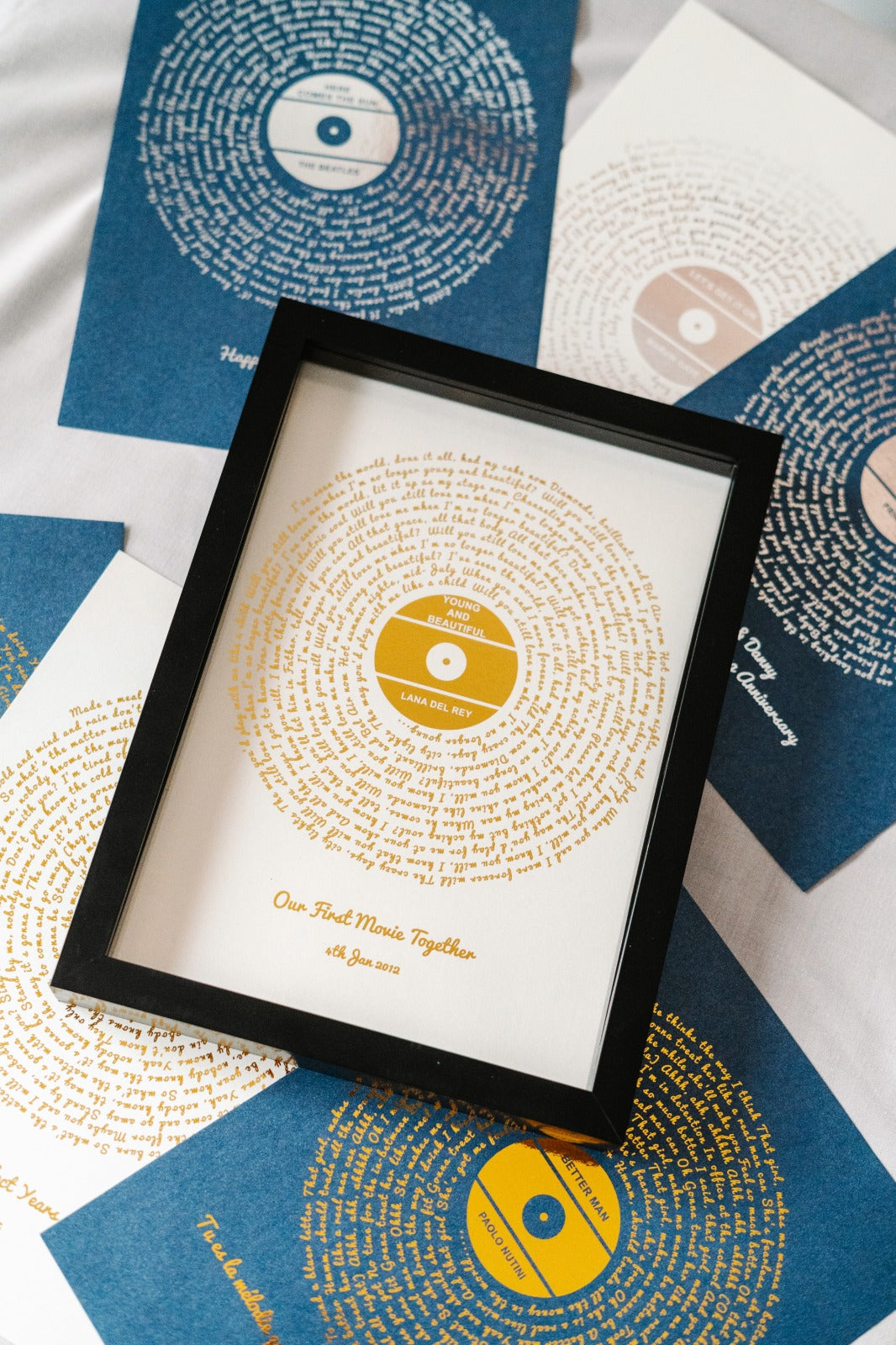 Special Anniversary? Surprise your loved ones with the lyrics of their favourite song, elegantly presented in a golden or platinum spiral – a cherished token of your love.